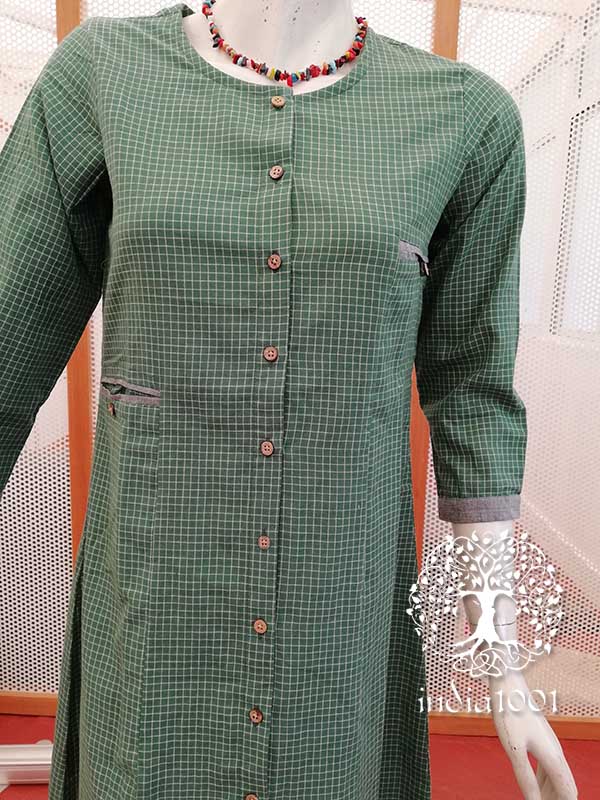 Elegant Woven A-line Cotton long dress with pocket details