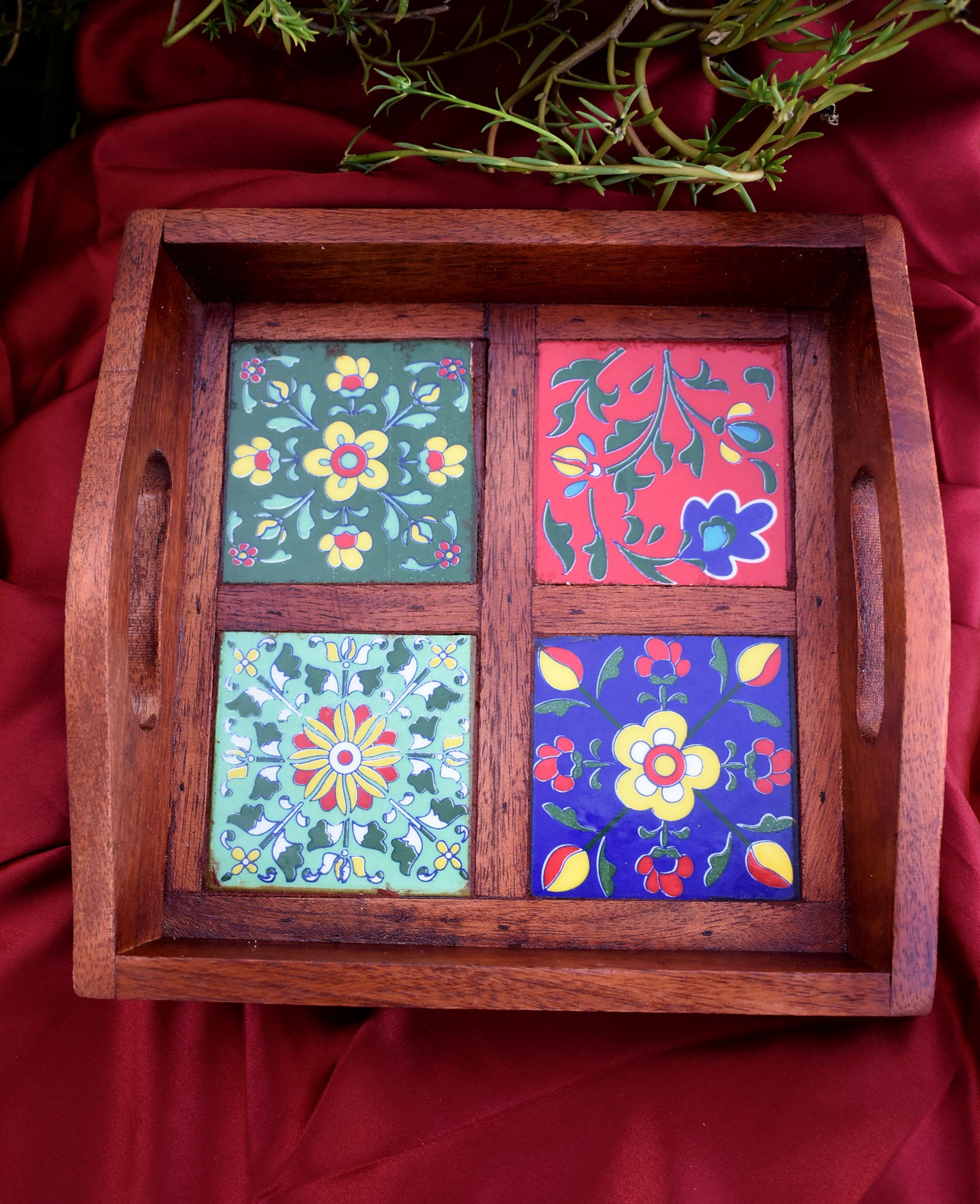 - Mango wood Blue pottery tray
