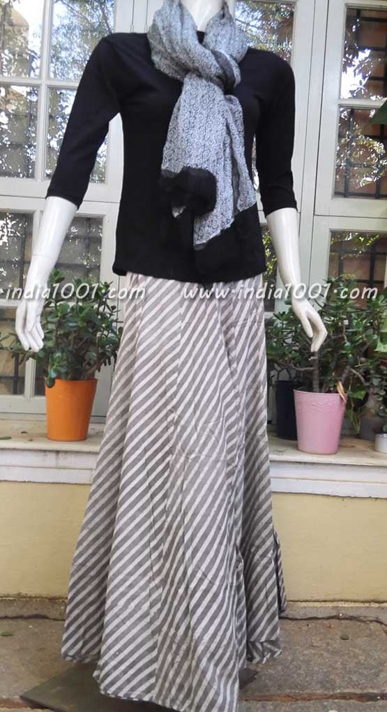 Elegant Block printed Cotton palazzo stitched with close to 4 mtrs fabric, creating kalis giving it a beautiful fall and look. Has a combination of elastic at the back and a flat panel in the front for a nice fit. Pair it with a Long kurta, short top/kurti or a spaghetti and stole..