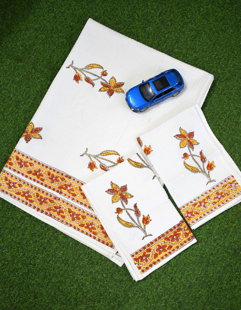 Elegant Hand Block Printed KIDS Bath Towels on 100% cotton Waffle weave.