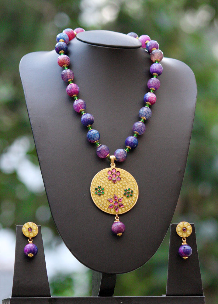 This royal, classy and grand necklace set with semi precious beads and stones ... a beautiful neck piece and stunning